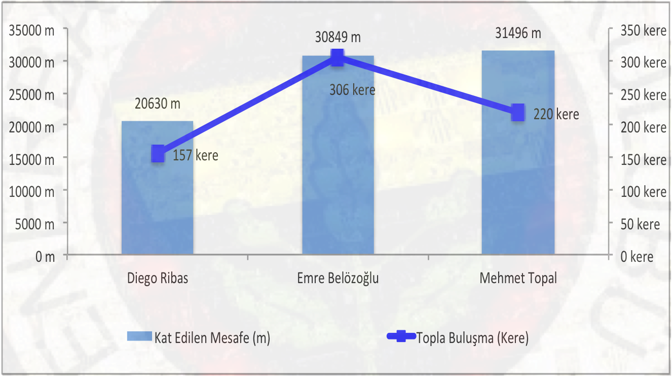 Kat edilen mesafeler ise istatistik açısından önemli bir veri olsa da tek başına zaman zaman yanıltıcı sonuçlar verebiliyor. Bu yazıda biraz daha derinlemesine inerek Emre Belözoğlu – Mehmet Topal ve Diego Ribas üçgeninde neler oluyor biraz inceleyeceğiz.