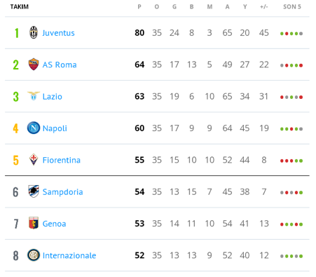 Inter bütün bir sezon yakalayamadığı istikrarı sezon sonu yaklaştıkça yakalamaya çalışıyor. Son 5 haftada hiç maç kaybetmeyen takım, AC Milan maçına kadar da hiç bir ‘büyük’ diyebileceğimiz bir maçı kazanamamıştı. AC Milan beraberliğinden sonra AS Roma, Udinese ve Lazio’yu mağlup eden Inter, bu seriye rotasyona gitmesi beklenen Juventus karşısında da devam etmek istiyor.
