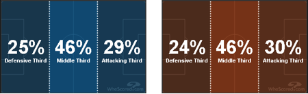 Inter ligin hücumda orta alanın merkezini en çok kullanan takım. %33 ile merkezden hücum eden takım, buna bağlı olarak set hücumlarından 32 gol kaydetti. Ligin en az faul yapılan takımlarından biri olmasına rağmen duran top organizasyonlarını oldukça etkili kullanan Inter bu organizasyonlar sonucu 13 kez gol ile buluştu. Kanat hücumlarında ise yeterli etkiye sahip olamayan takım sağ kanattan %32 ile hücum ediyor ve bu istatistik ligin en az kanat hücumu demek oluyor. Savunma anlamında orta sahayı kuvvetli tutan Inter maç başına 16,3 ile ligin en çok ikili mücadele kazanan ikinci takımı. En büyük sorunu savunmacılarının rakip forvetlerin yanında ağır kalması olan Inter bu yüzden kolay gol yeme sorununa bir türlü son veremiyor.