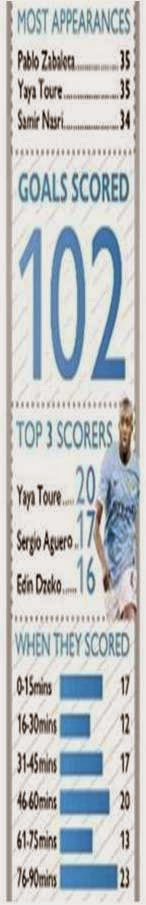En golcü oyuncu istatistiği ise gerçekten ilginç. Toure inanılmaz bir sezon geçirdi, belki kariyerinin zirvesinde. Bunu 20 golle süsledi ve takımının en golcü oyuncusu oldu. Box-to-box bir oyuncu tipi için müthiş bir rakam.